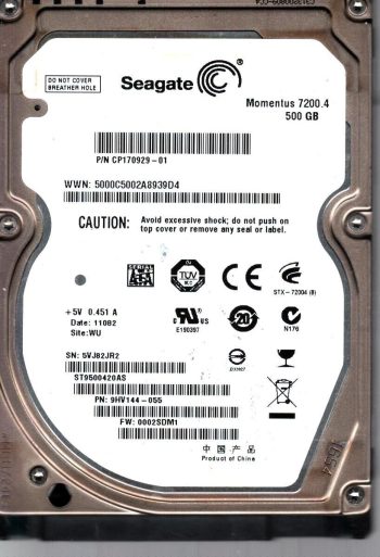 Model:ST9500420AS Country of manufacture:CHINA Capacity:500GB Serial number:5VJ82JR2 Date of manufacture:11082 PCB:100536286 REV E QR code:100563953 Part number:9HV144-055 SKU:11102