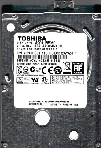 Model:MQ01UBF050 Country of manufacture:PHILIPPINES Capacity:500GB Serial number:Â Date of manufacture:FEB 2015 PCB:G003309A Part number:HDKCD02AYA31 T SKU:11219