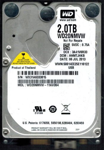 Model:WD20NMVW-11AV3S4 Country of manufacture:THAILAND Capacity:2TB Serial number:WX31A6333815 DCM:HHMTJHKB Date of manufacture:JUL 2013 PCB:2060-771961-000 REV P1 QR code:771961-F00 SKU:10491