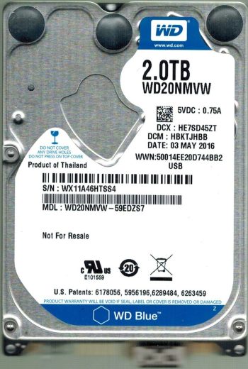Model:WD20NMVW-59EDZS7 Country of manufacture:THAILAND Capacity:2TB Serial number:WX11A46HTSS4 DCM:HBKTJHBB Date of manufacture:MAY 2016 PCB:2060-771961-001 REV B QR code:771961-R01 SKU:10179