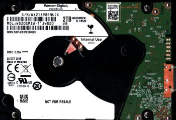 Model:WD20SMZW-11JW8S0 Capacity:2TB Serial number:WXT1E68FLJ8T Date of manufacture:SEP 2018 Country of manufacture:MALAYSIA PCB:2060-800067-001 SKU:11872