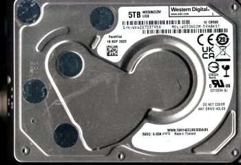 Model:WD50NDZM-59A8KS1 Country of manufacture:THAILAND Capacity:5TB Serial number:WX42E703T95R Date of manufacture:SEP 2023 PCB:2060-810033-001 REVP0 QR code:810033-001 SKU:11380