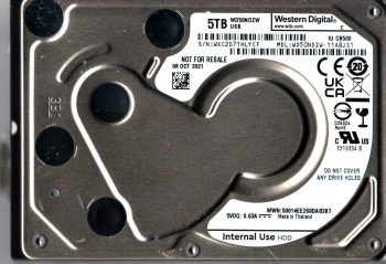 Model:WD50NDZW-11A8JS1 Capacity:5TB Serial number:WXD2E1149S7M Date of manufacture:JUN 2021 Country of manufacture:THAILAND PCB:2060-810035-000 REV P0 SKU:12035