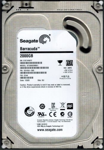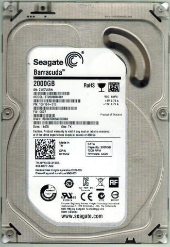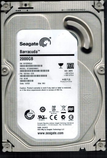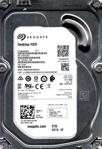 Model:ST2000DM001 Country of manufacture:THAILAND Capacity:2TB Serial number:Z8E047CN Date of manufacture:JAN 2016 PCB:100762568 REV A QR code:100738738 Part number:1ER164-044 SKU:10214