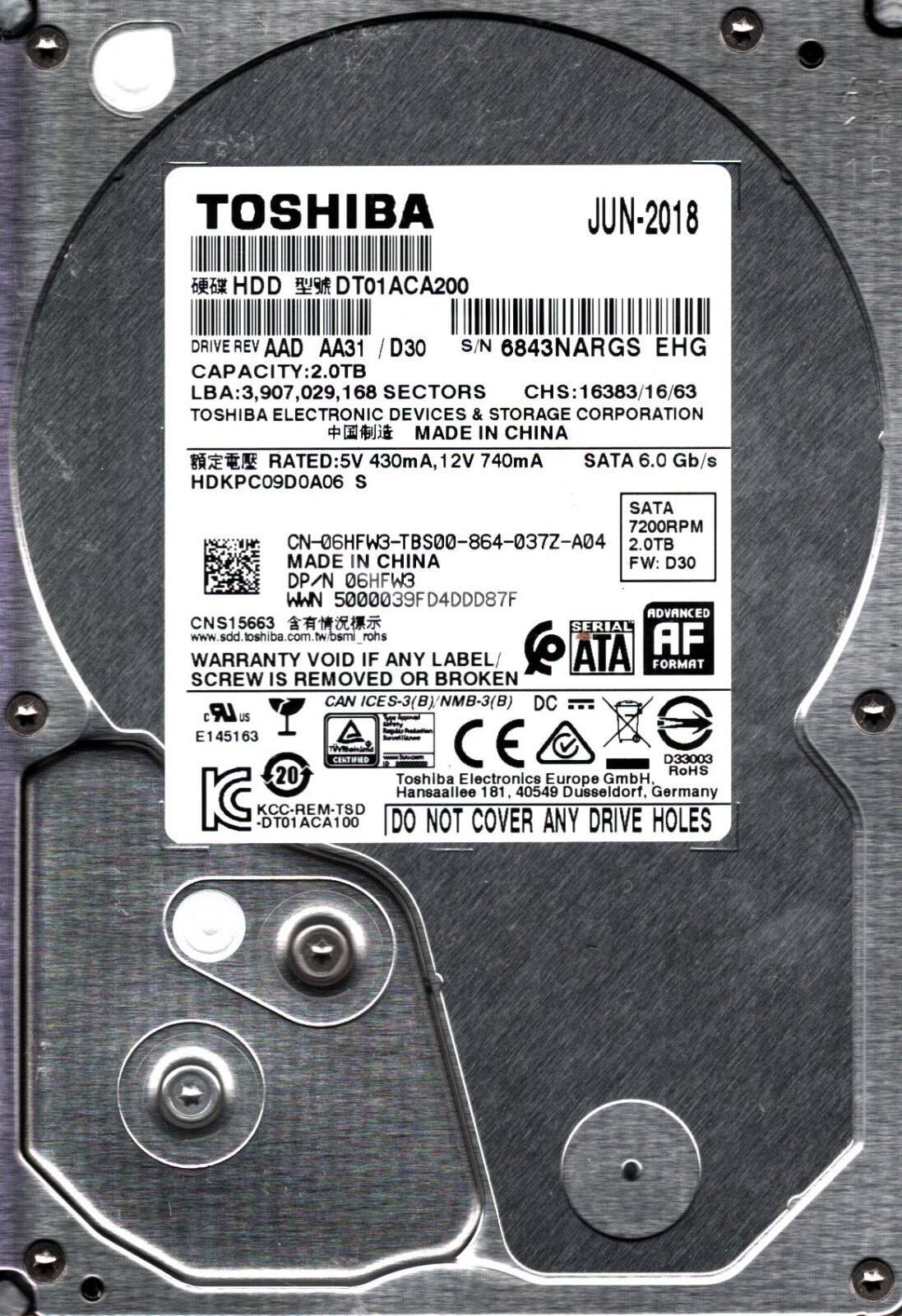 DT01ACA200 P/n: HDKPC09D0A06 S Rev: AAD AA31/D30 2TB JUN 2018 CHINA TOSHIBA