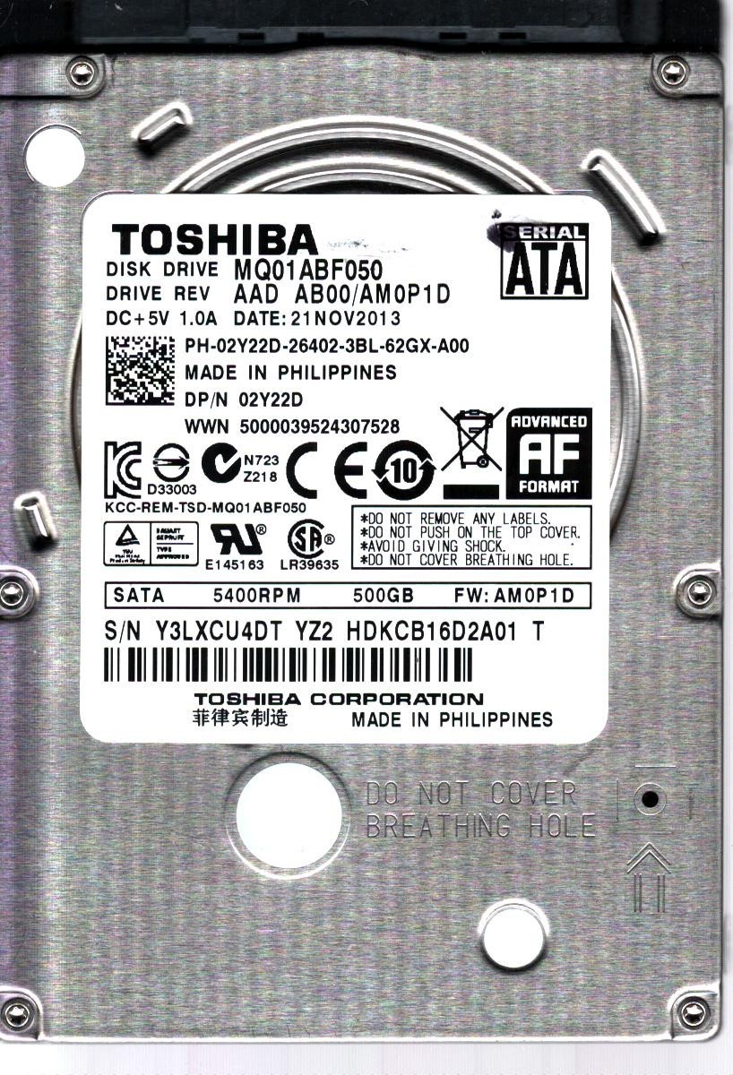 MQ01ABF050 HDKCB16D2A01 T AAD AB00/AM0P1D 500GB NOV 2013 PHILIPPINES TOSHIBA