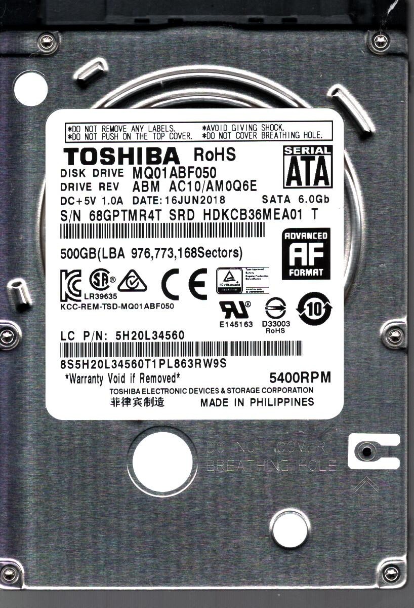 MQ01ABF050 HDKCB36MEA01 T REV:ABM AC10/AM0Q6E 500GB JUN 2018 PHILIPPINES TOSHIBA