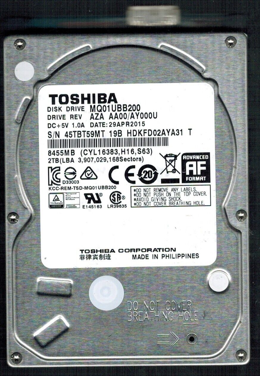 MQ01UBB200 HDKFD02AYA31 T Rev: AZA AA00/AY000U 2TB APR 2015 PHILIPPINES TOSHIBA