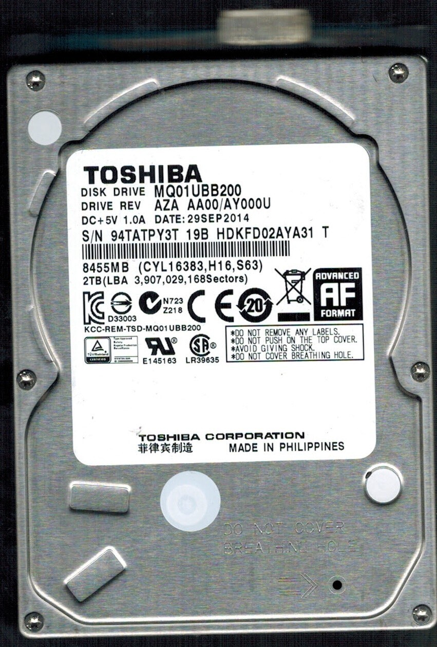 MQ01UBB200 P/N: HDKFD02AYA31 T REV: AZA AA00/AY00OU 2TB SEP 2014 PHILIPPINES TOS
