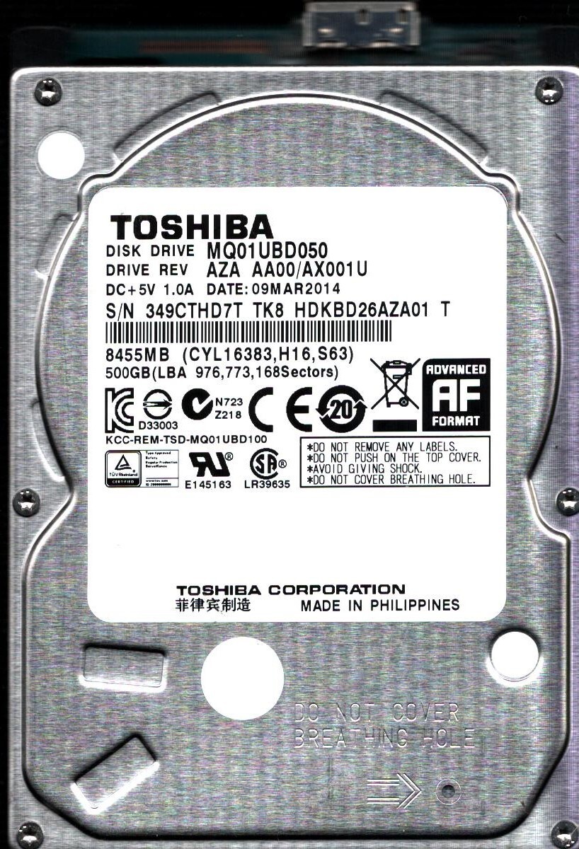 MQ01UBD050 HDKBD26AZA01 T REV AZA AA00/AX001U 500GB MAR 2014 PHILIPPINES TOSHIBA