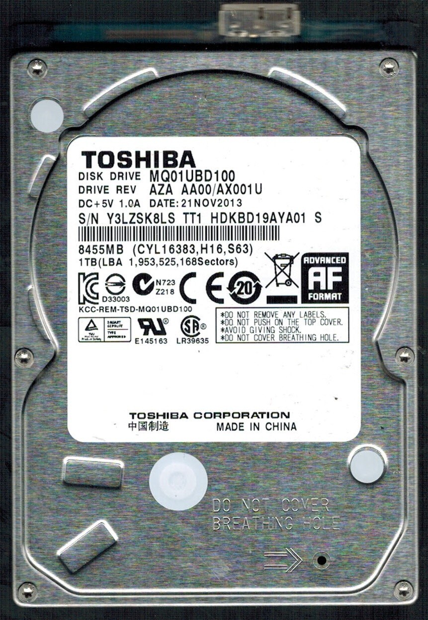 MQ01UBD100 HDKBD19AYA01 S Rev: AZA AA00/AX001 U 1TB NOV 2013 CHINA TOSHIBA