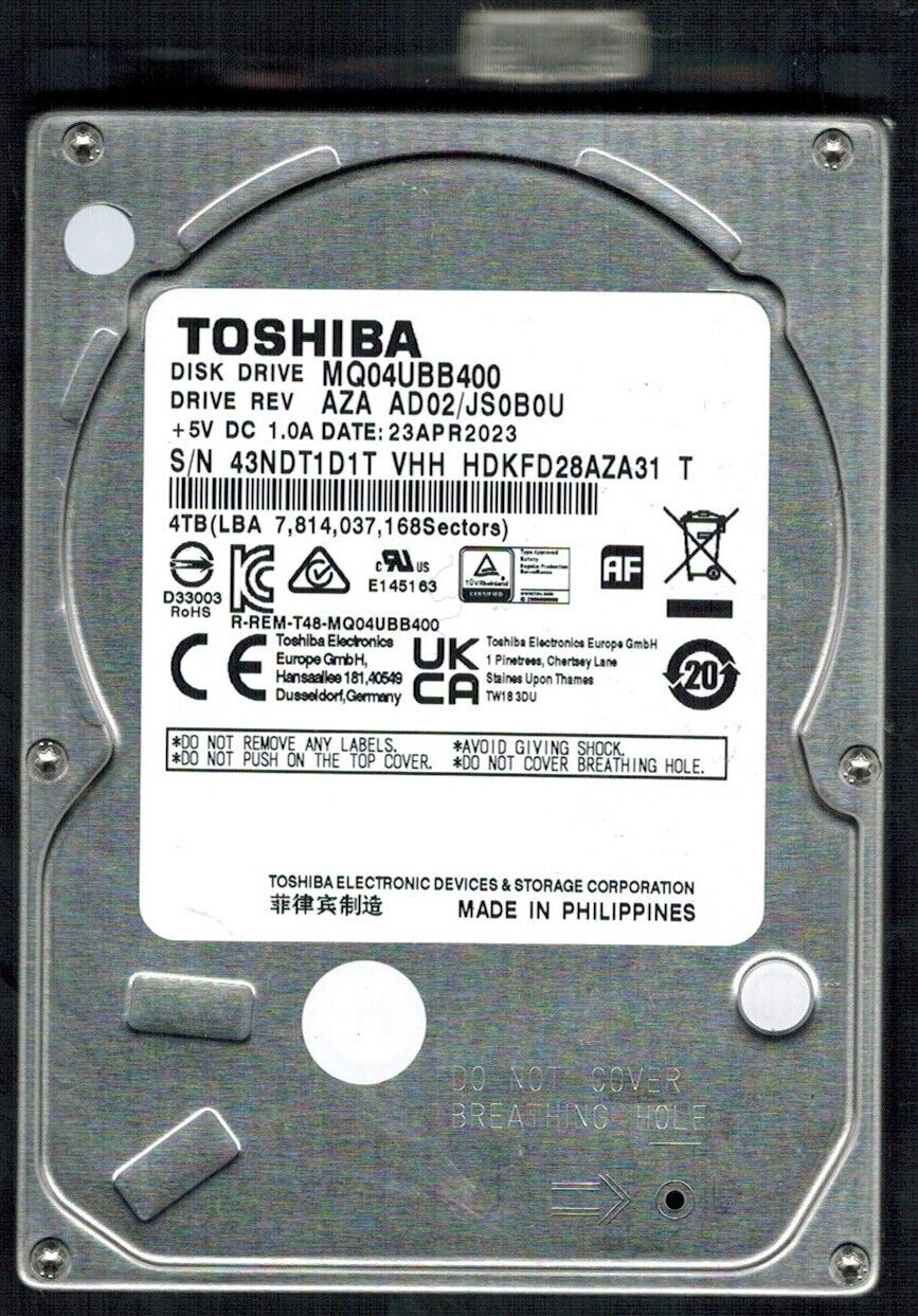 MQ04UBB400 HDKFD28AZA31 T Rev: AZA AD02/JS0B0U 4TB APR 2023 PHILIPPINES TOSHIBA