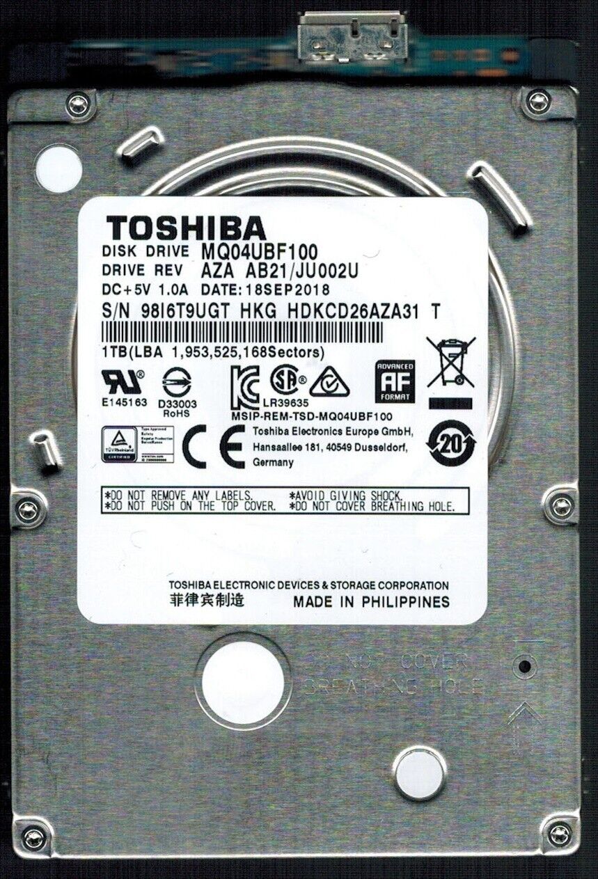 MQ04UBF100 HDKCD26AZA31 T REV: AZA AB21/JU002U 1TB SEP 2018 PHILIPPINES TOSHIBA