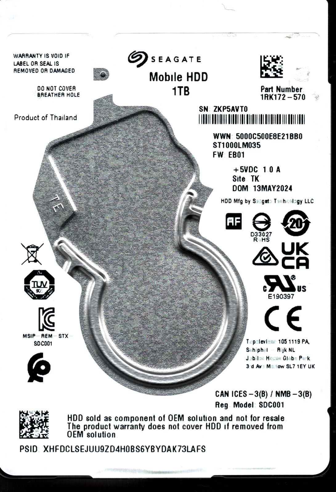 Model:ST2000LM007 Capacity:2TB Serial number:WDZ396JR Date of manufacture:FEB 2017 Country of manufacture:CHINA PCB:100809471 REV A QR code:100790701 1BHHW Part number:1R8174-568 SKU:10113