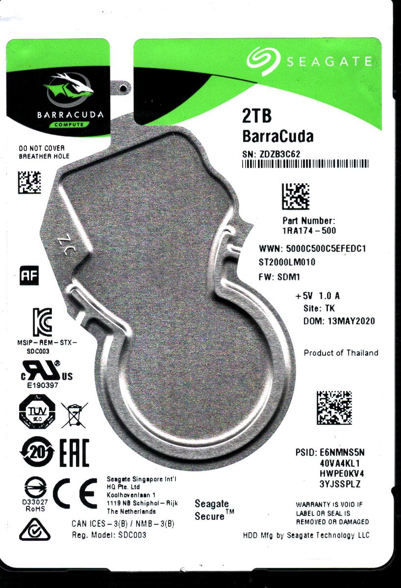 Model:WD10SDRM-59AEVS1 Country of manufacture:THAILAND Capacity:1TB Serial number:WX12A611CBIS Date of manufacture:NOV 2021 PCB:2060-800086-000 REV P2 QR code:800086-200 SKU:10149
