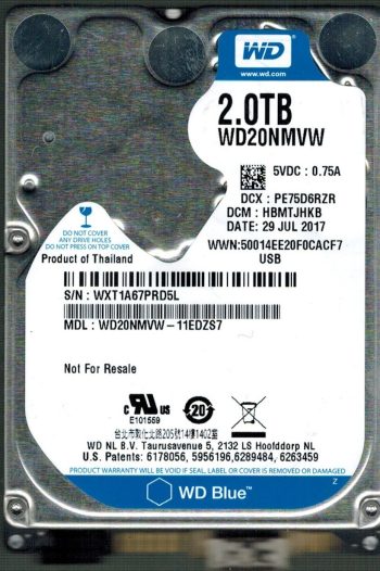 Model:WD20NMVW-11EDZS7 Country of manufacture:THAILAND Capacity:2TB Serial number:WXT1A67PRD5L DCM::HBMTJHKB Date of manufacture:JUL 2017 PCB:2060-771961-001 REV B QR code:771961-R01 SKU:10159