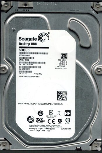 Model:ST5000DM000 Country of manufacture:CHINA Capacity:5TB Serial number:W4J035V9 Date of manufacture:08/2014 PCB:100721570 REV E QR code:100727008 Part number:1FK178-568 SKU:10110