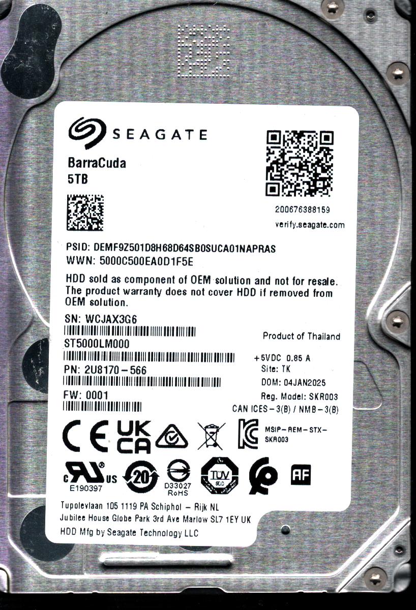 Model:ST5000DM000 Country of manufacture:CHINA Capacity:5TB Serial number:W4J035V9 Date of manufacture:08/2014 PCB:100721570 REV E QR code:100727008 Part number:1FK178-568 SKU:10110