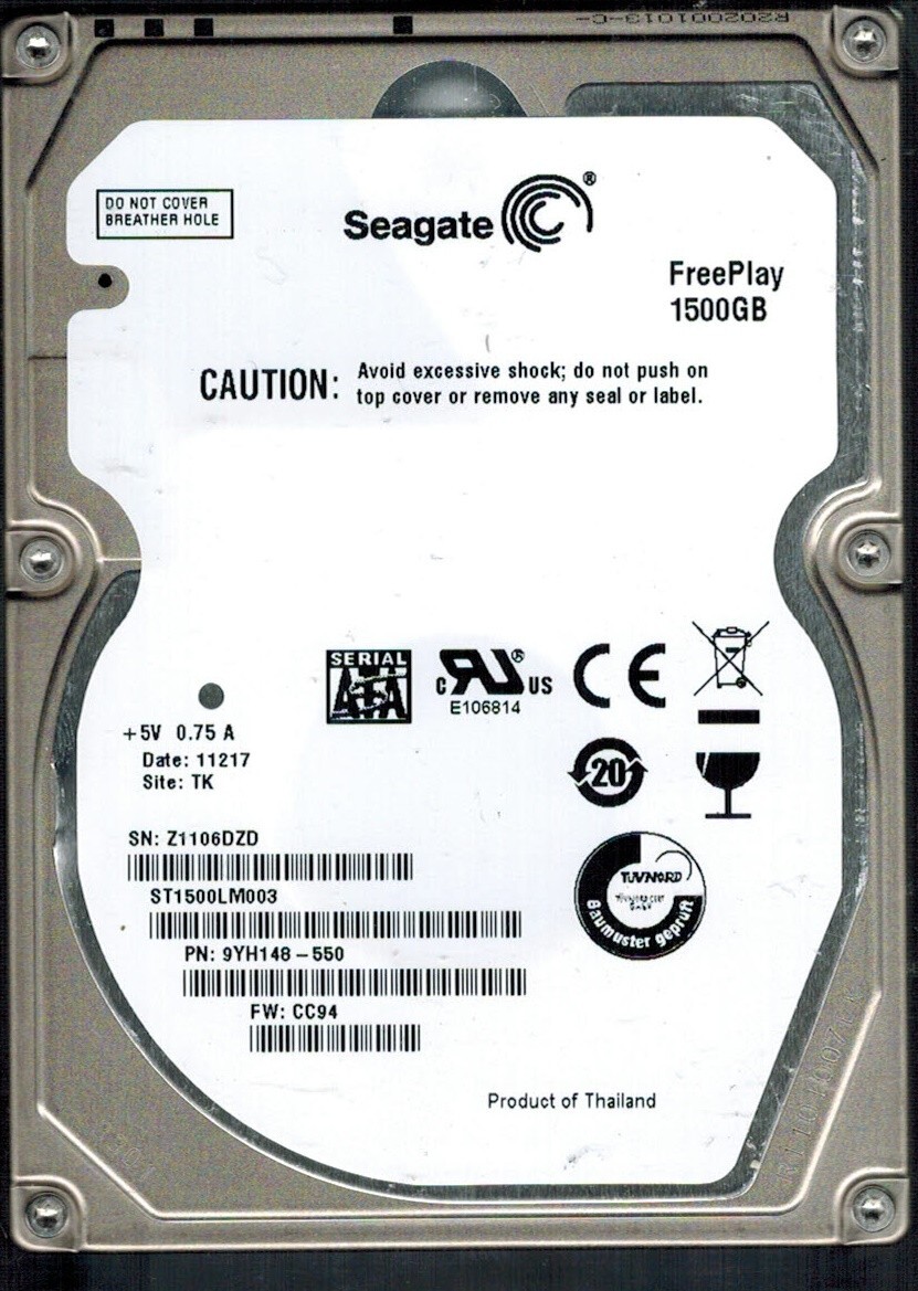 ST1500LM003 P/N: 9YH148-550 F/W: CC94 S/N: Z110 TK 1.5TB THAILAND SEAGATE