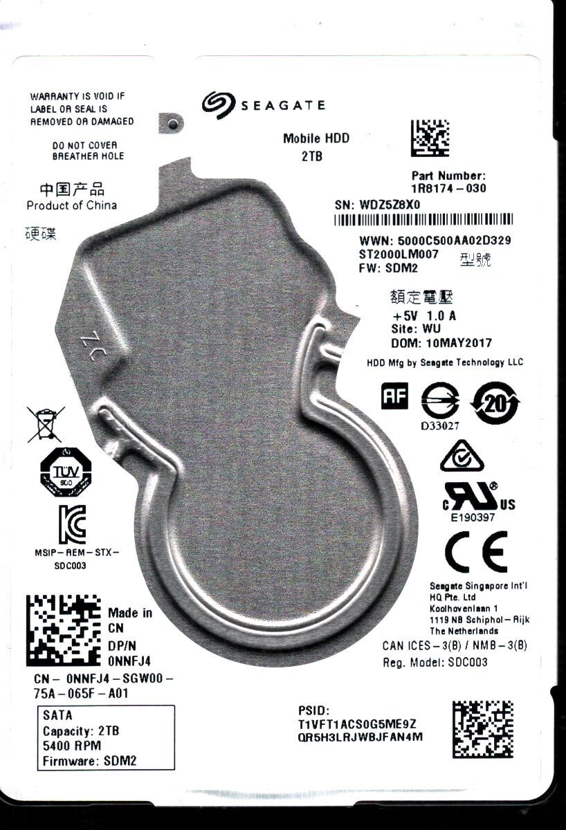 ST2000LM007 P/N: 1R8174-030 F/W: SDM2 S/N: WDZ5 WU 2TB MAY 2017 CHINA SEAGATE