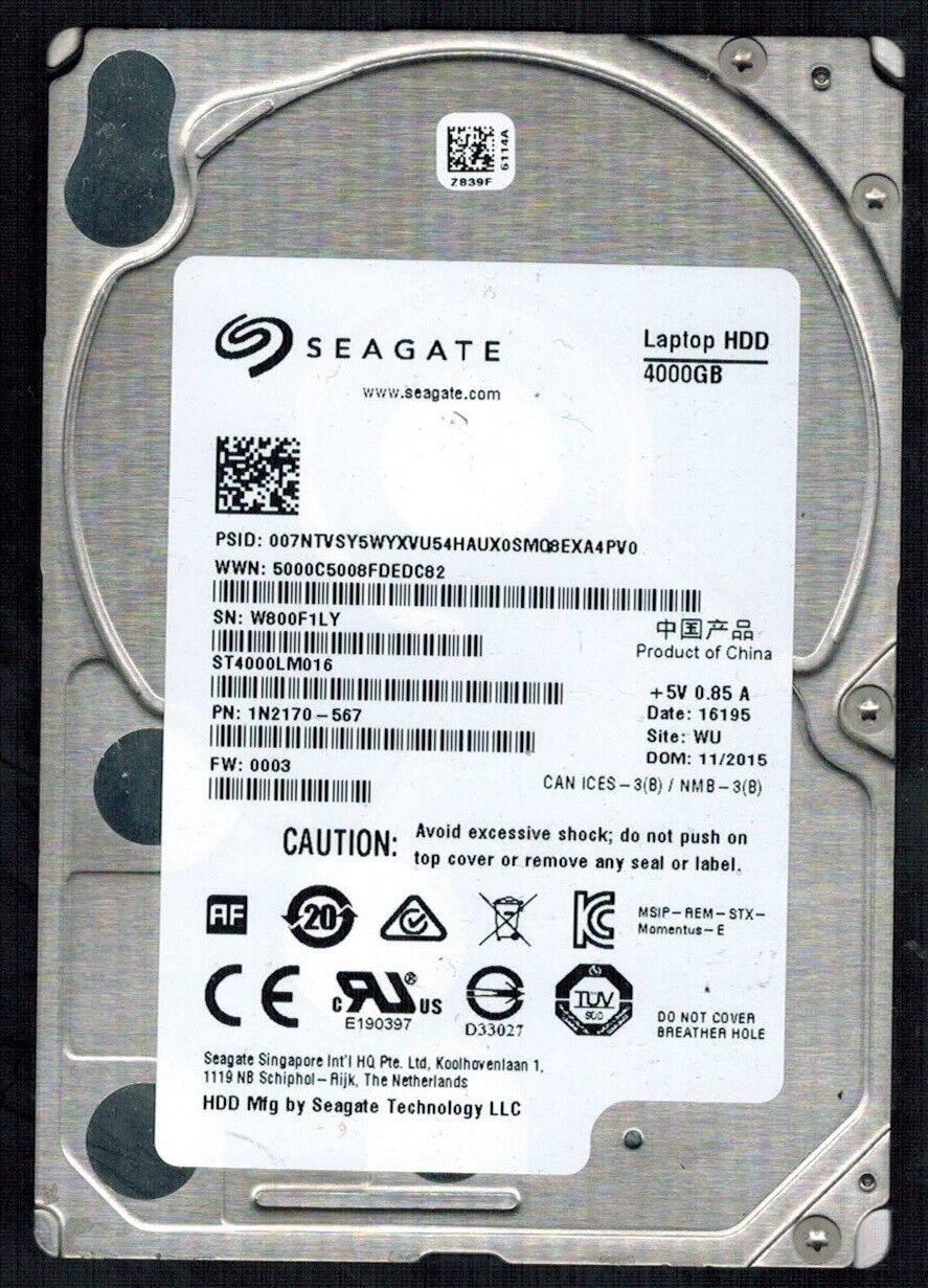 ST4000LM016 P/N: 1N2170-567 F/W: 0003 S/N: W800 WU 4TB NOV 2015 CHINA SEAGATE