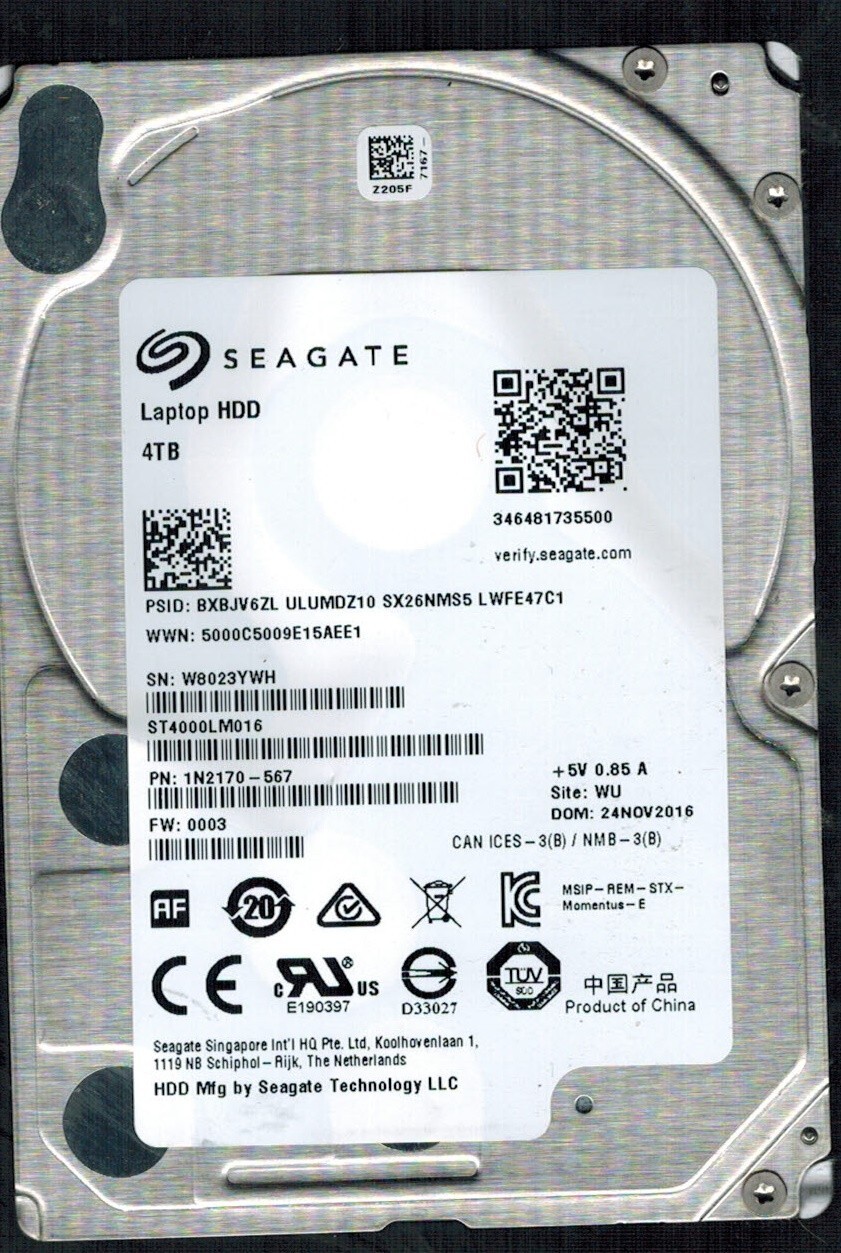 ST4000LM016 P/N: 1N2170-567 F/W: 0003 S/N: W802 WU 4TB NOV 2016 CHINA SEAGATE