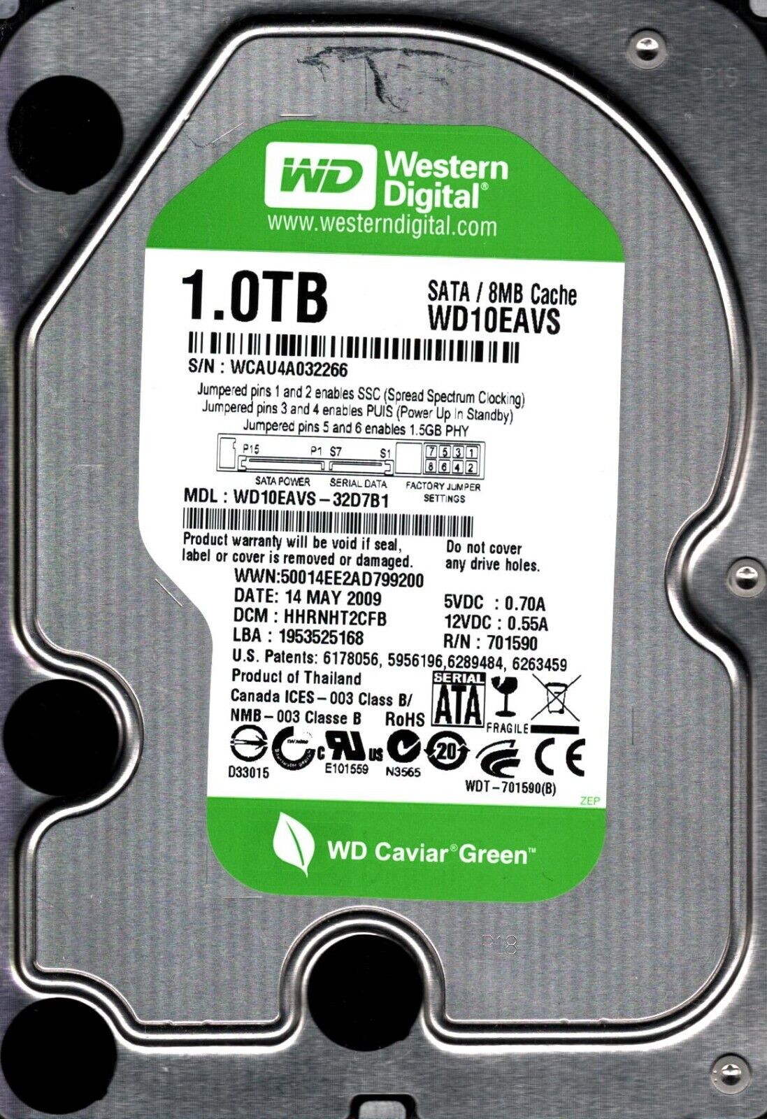WD10EAVS-32D7B1 S/N: WCAU4 DCM: HHRNHT2CFB WESTERN DIGITAL 1TB THAILAND MAY 2009