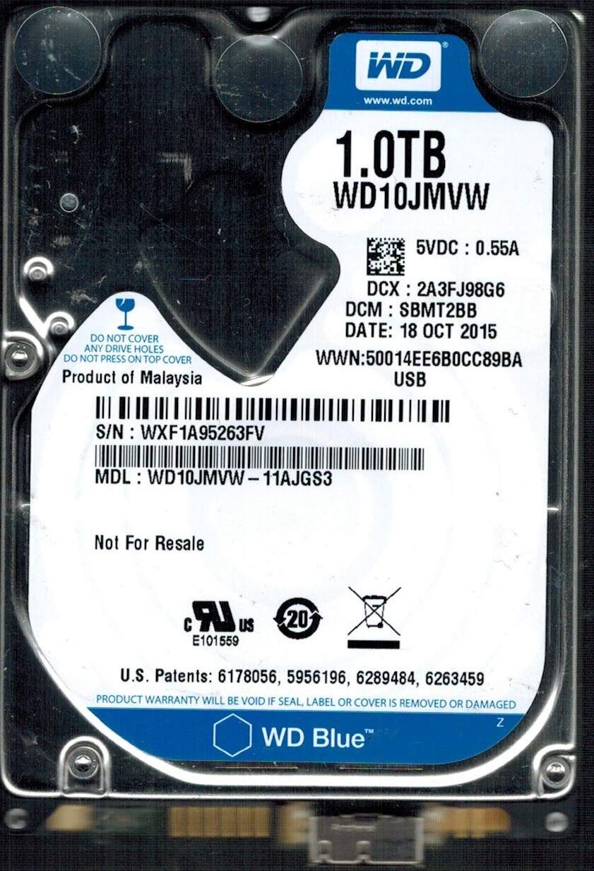 WD10JMVW-11AJGS3 DCM: SBMT2BB S/N: WXF1A WESTERN DIGITAL 1TB MALAYSIA OCT 2015