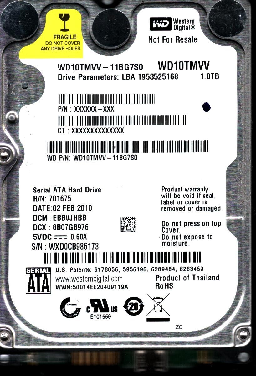 WD10TMVV-11BG7S0 S/N: WXD0C DCM: EBBVJHBB WESTERN DIGITAL 1TB THAILAND FEB 2010