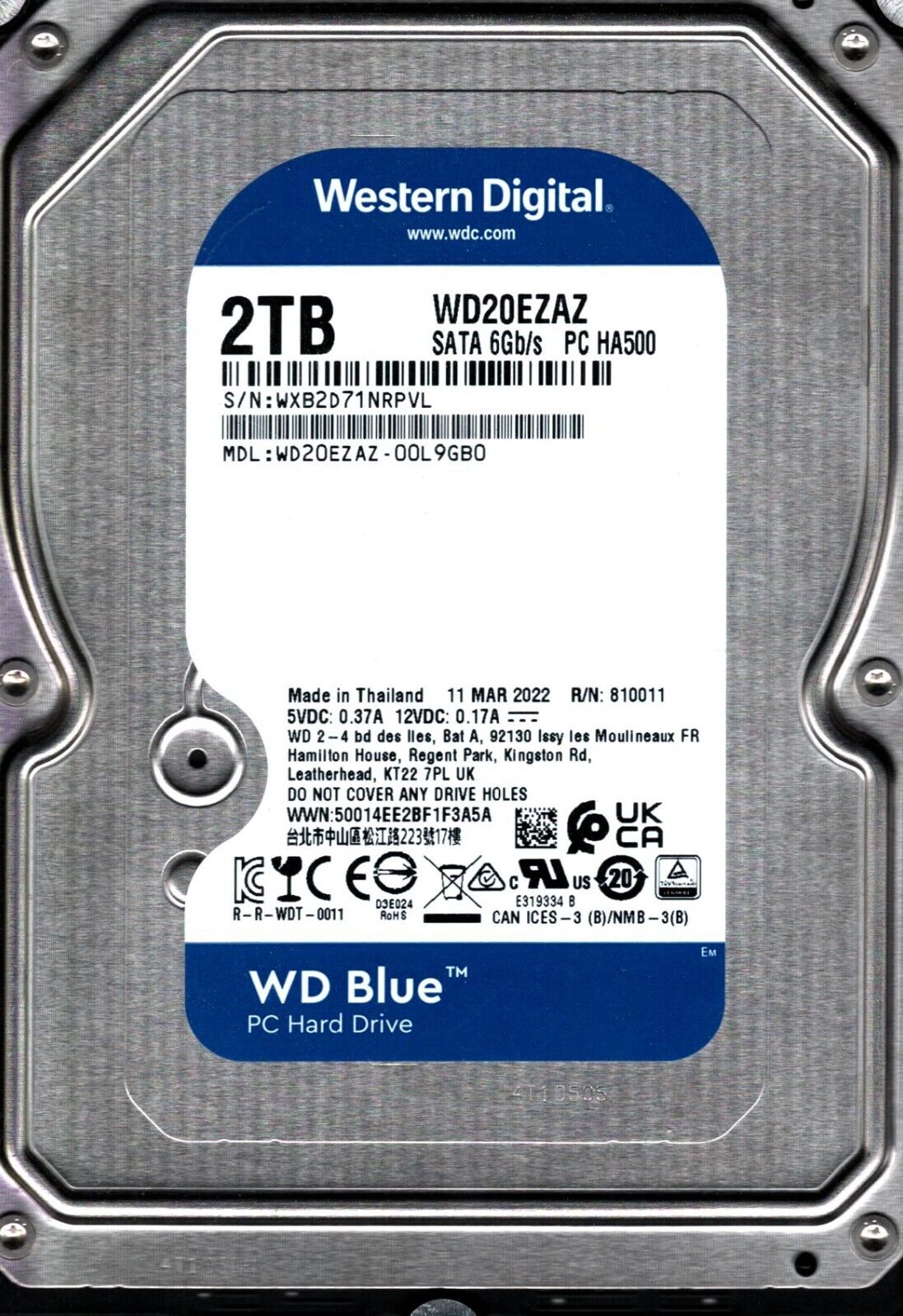 WD20EZAZ-00L9GB0 S/N: WXB2D WESTERN DIGITAL 2TB THAILAND MAR 2022