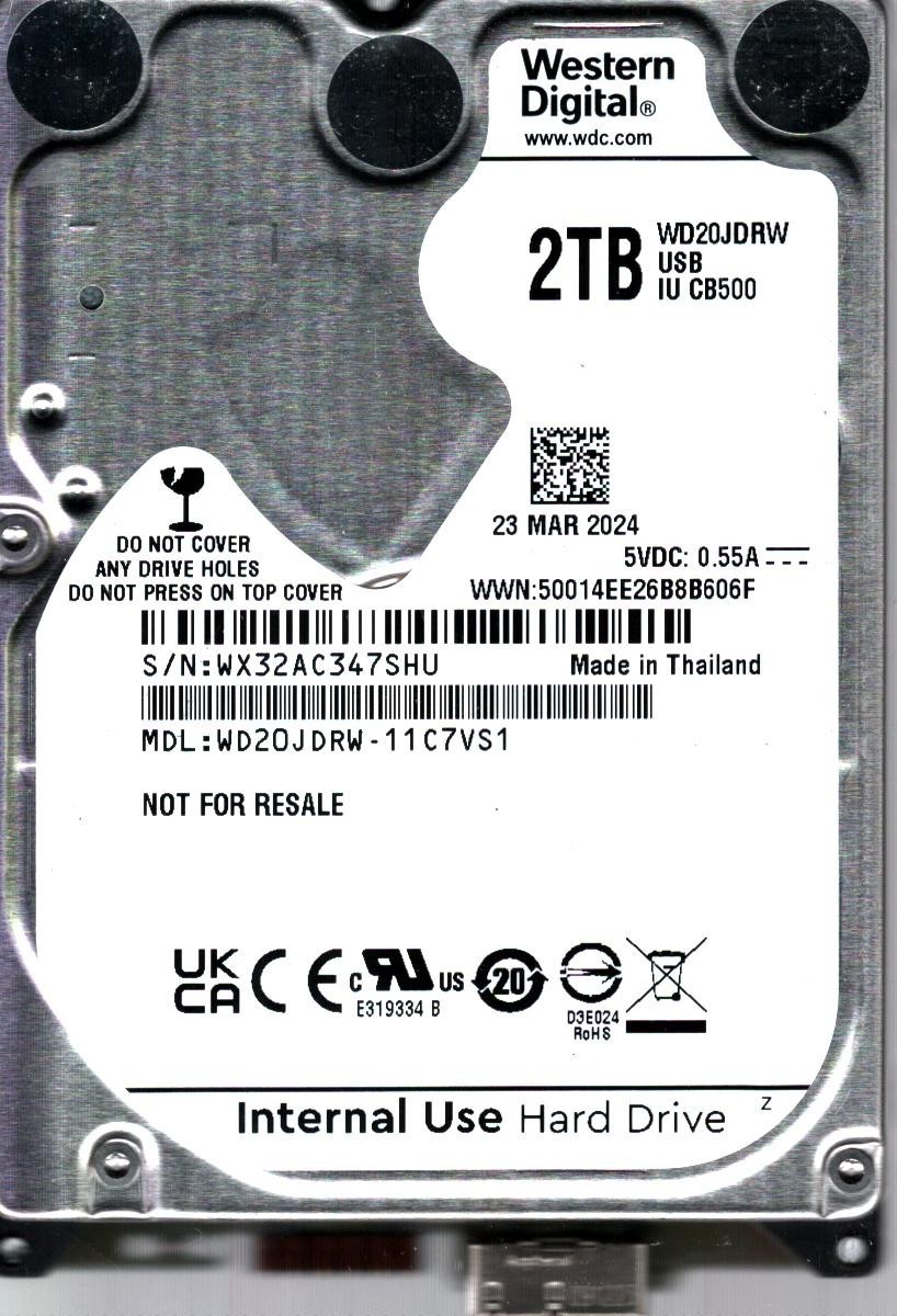 WD20JDRW-11C7VS1 S/N: WX32A WESTERN DIGITAL 2TB THAILAND MAR 2024