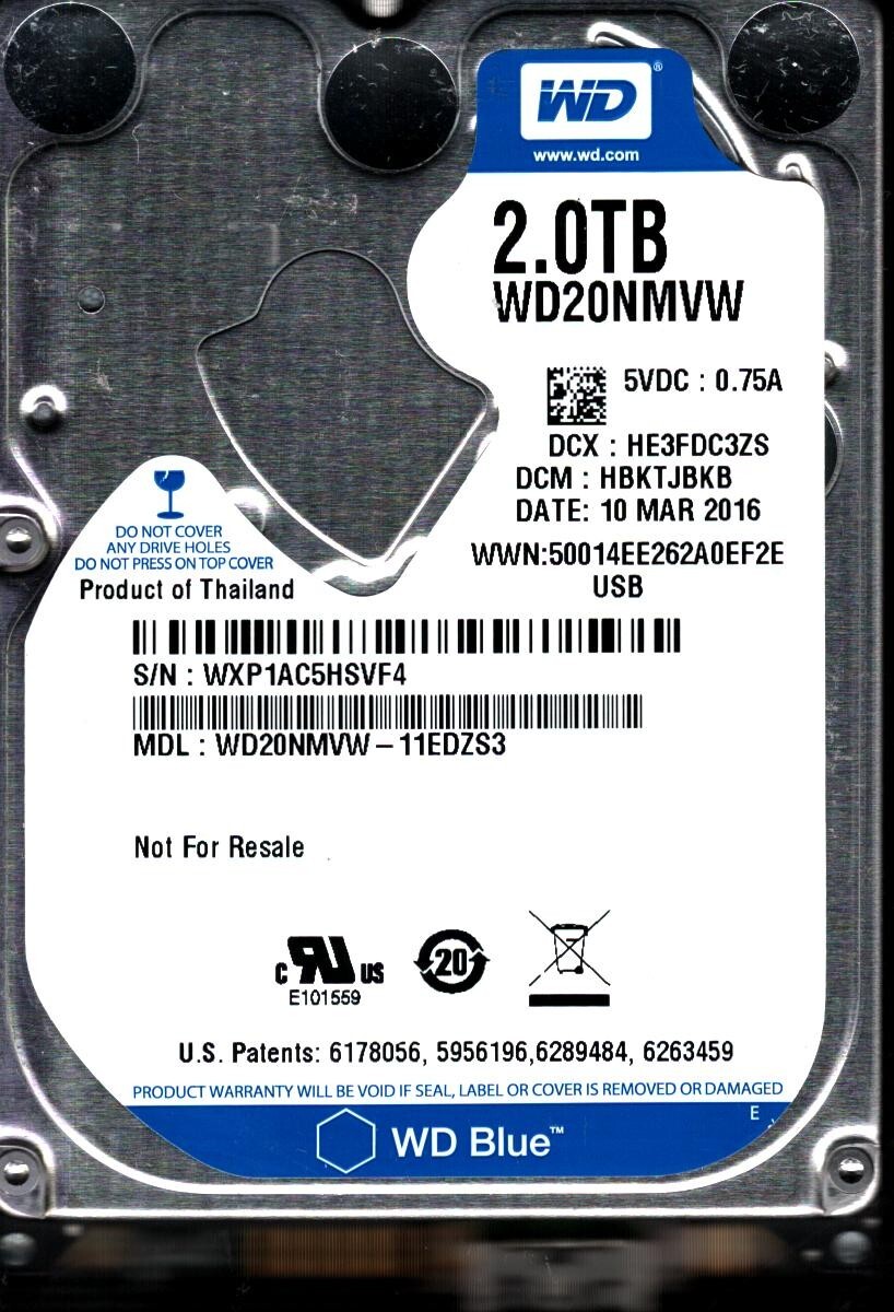 WD20NMVW-11EDZS3 S/N: WXP1A DCM: HBKTJBKB WESTERN DIGITAL 2TB THAILAND MAR 2016