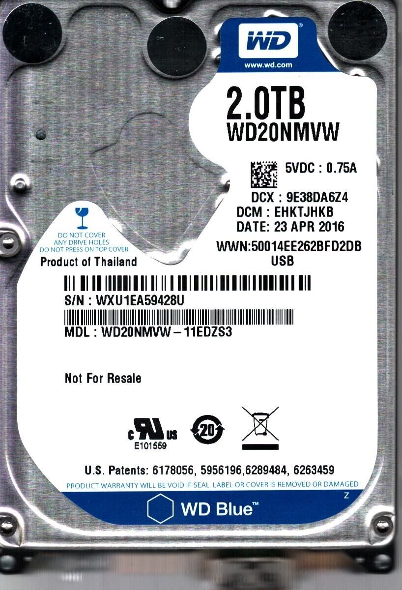 WD20NMVW-11EDZS3 S/N: WXU1E DCM: EHKTJHKB WESTERN DIGITAL 2TB THAILAND APR 2016