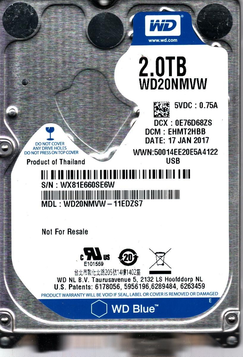 WD20NMVW-11EDZS7 S/N: WX81E DCM: EHMT2HBB WESTERN DIGITAL 2TB THAILAND JAN 2017