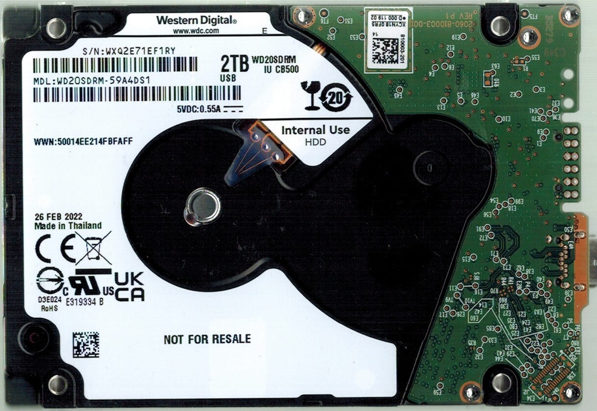 WD20SDRM-59A4DS1 WXQ2E WESTERN DIGITAL 2TB THAILAND FEB 2022