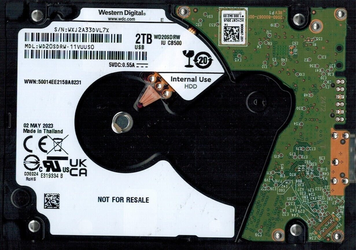 WD20SDRW-11VUUS0 S/N: WXJ2A WESTERN DIGITAL 2TB THAILAND MAY 2023