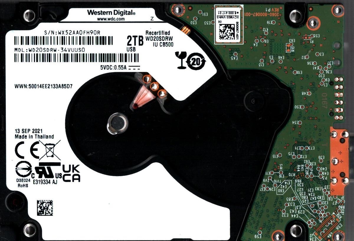 WD20SDRW-34VUUS0 S/N: WX52A WESTERN DIGITAL 2TB THAILAND SEP 2021