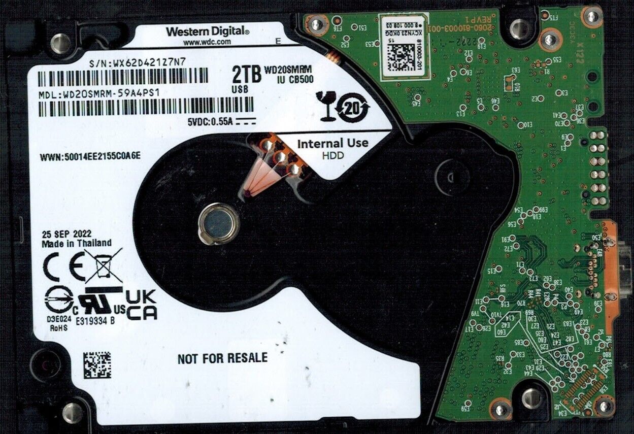 WD20SMRM-59A4PS1 S/N: WX62D WESTERN DIGITAL 2TB THAILAND SEP 2022