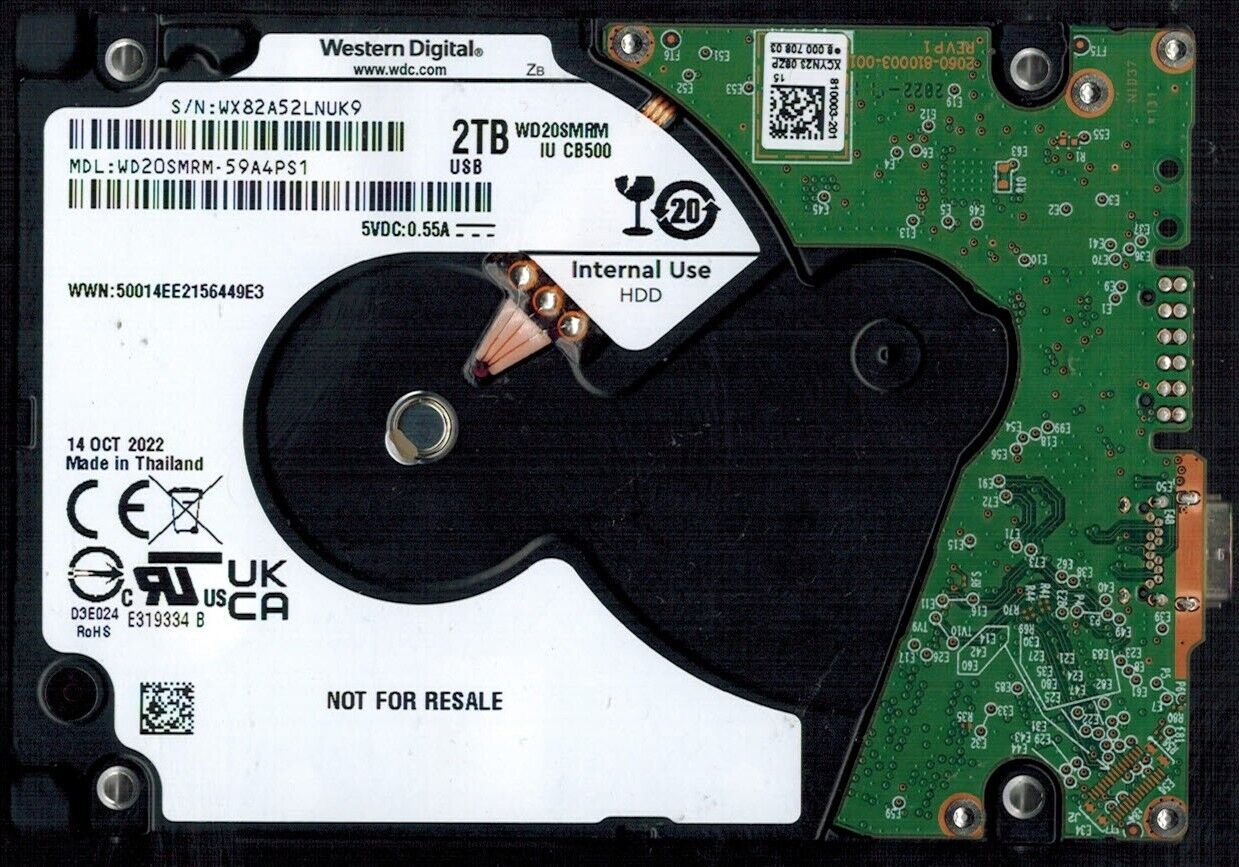 WD20SMRM-59A4PS1 S/N: WX82A WESTERN DIGITAL 2TB THAILAND OCT 2022