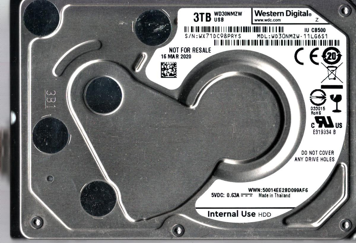 WD30NMZW-11LG6S1 S/N: WX71D WESTERN DIGITAL 3TB THAILAND MAR 2020