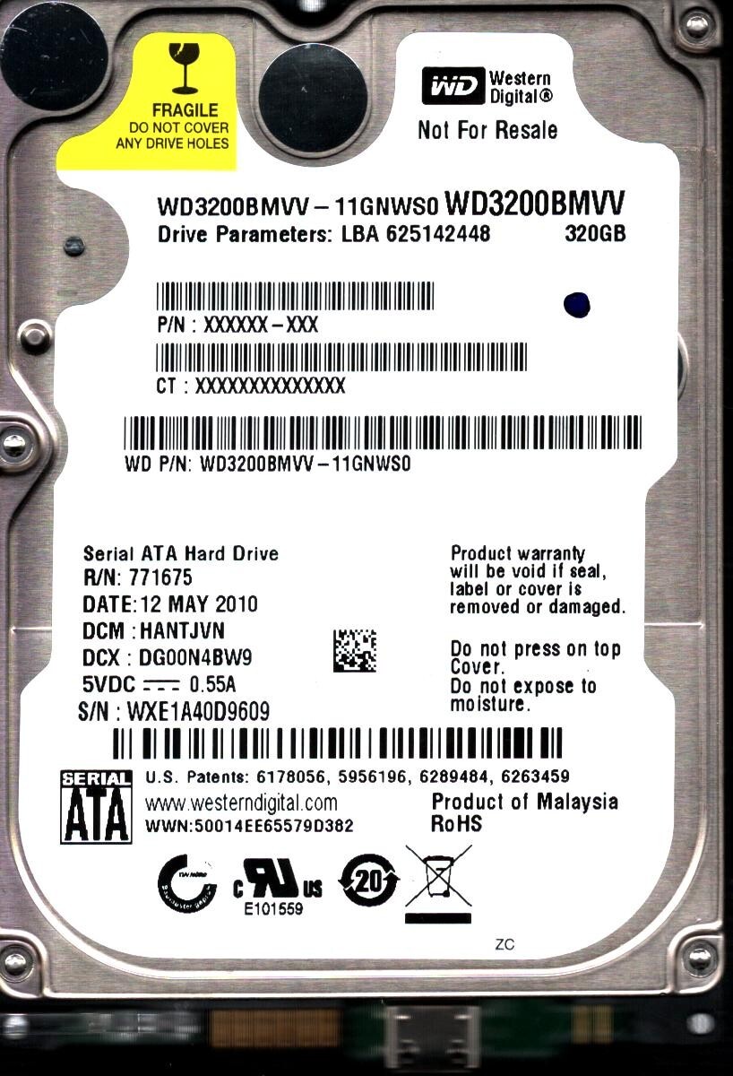 WD3200BMVV-11GNWS0 S/N:WXE1A DCM:HANTJVN WESTERN DIGITAL 320GB MALAYSIA MAY 2010
