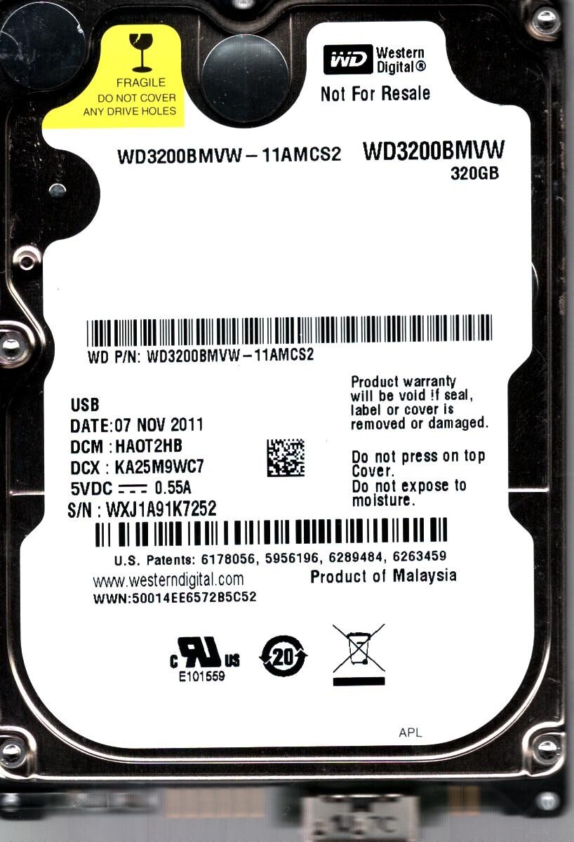 WD3200BMVW-11AMCS2 S/N:WXJ1A DCM:HA0T2HB WESTERN DIGITAL 320GB MALAYSIA NOV 2011