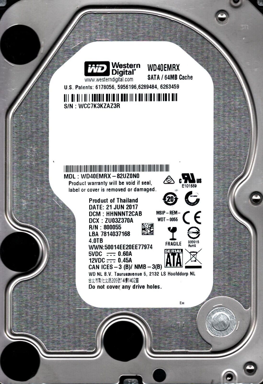WD40EMRX-82UZ0N0 S/N: WCC7K DCM:HHNNNT2CAB WESTERN DIGITAL 4TB THAILAND JUN 2017