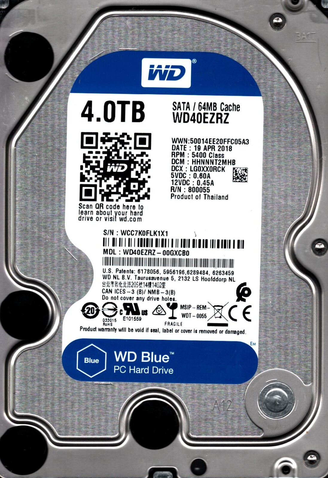 WD40EZRZ-00GXCB0 S/N:WCC7K DCM:HHNNNT2MHB WESTERN DIGITAL 4TB THAILAND APR 2018