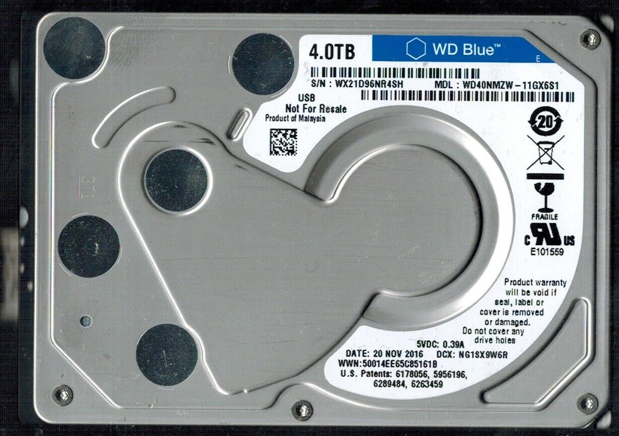WD40NMZW-11GX6S1 S/N: WX21D WESTERN DIGITAL 4TB MALAYSIA NOV 2016 DCX: NG1SX9W6R