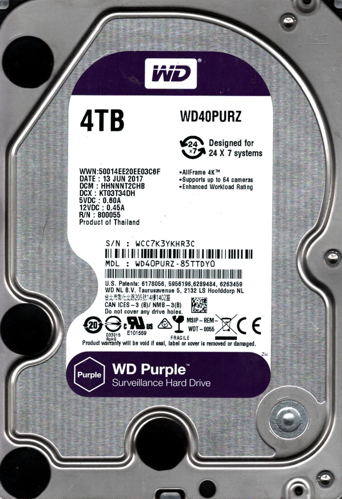 WD40PURZ-85TTDY0 S/N: WCC7 DCM: HHNNNT2CHB WESTERN DIGITAL 4TB THAILAND JUN 2017