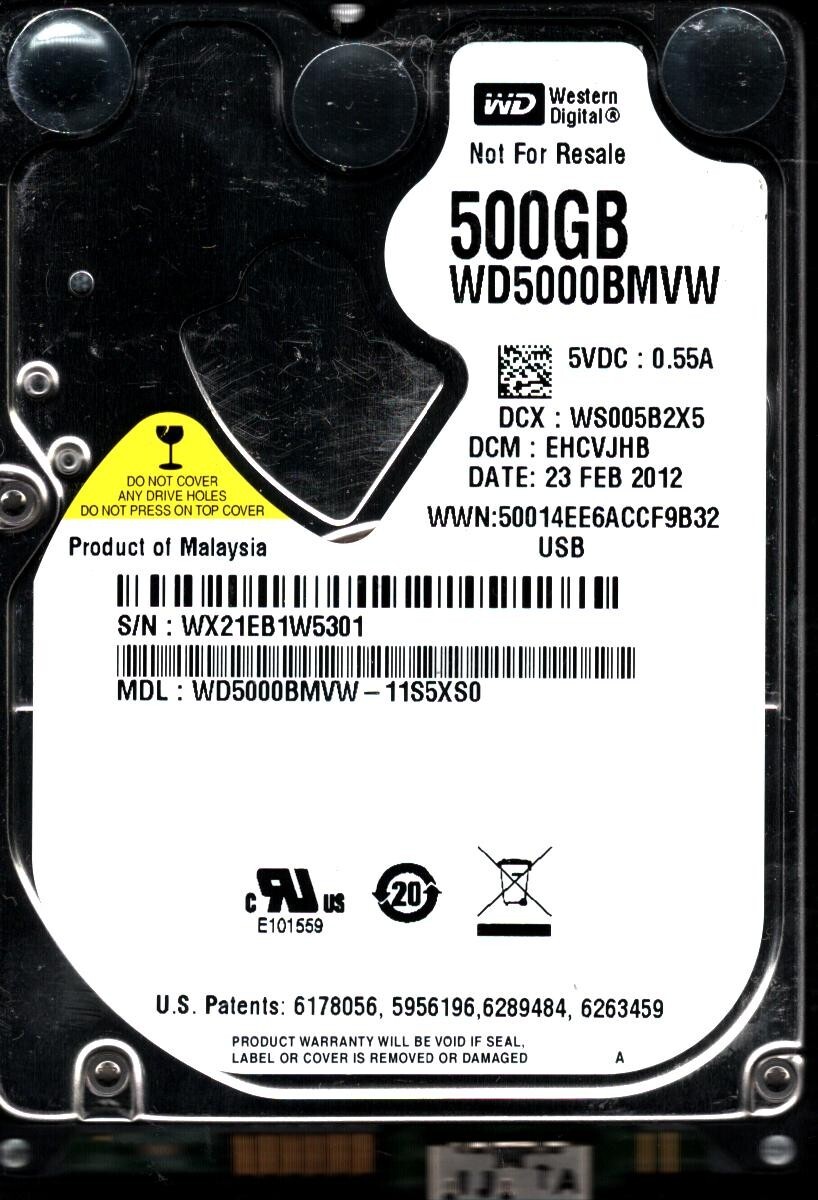 WD5000BMVW-11S5XS0 S/N:WX21E DCM:EHCVJHB WESTERN DIGITAL 500GB MALAYSIA FEB 2012