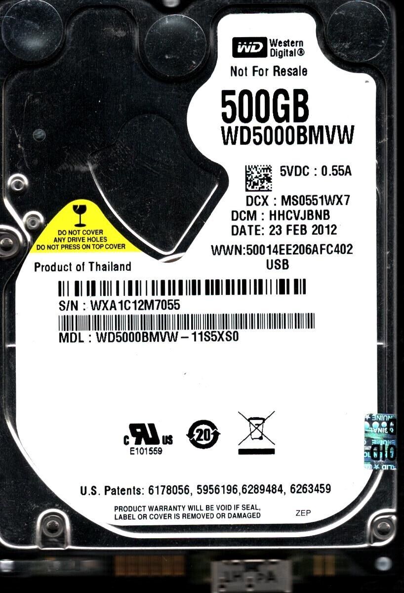 WD5000BMVW-11S5XS0 S/N:WXA1 DCM:HHCVJBNB WESTERN DIGITAL 500GB THAILAND FEB 2012