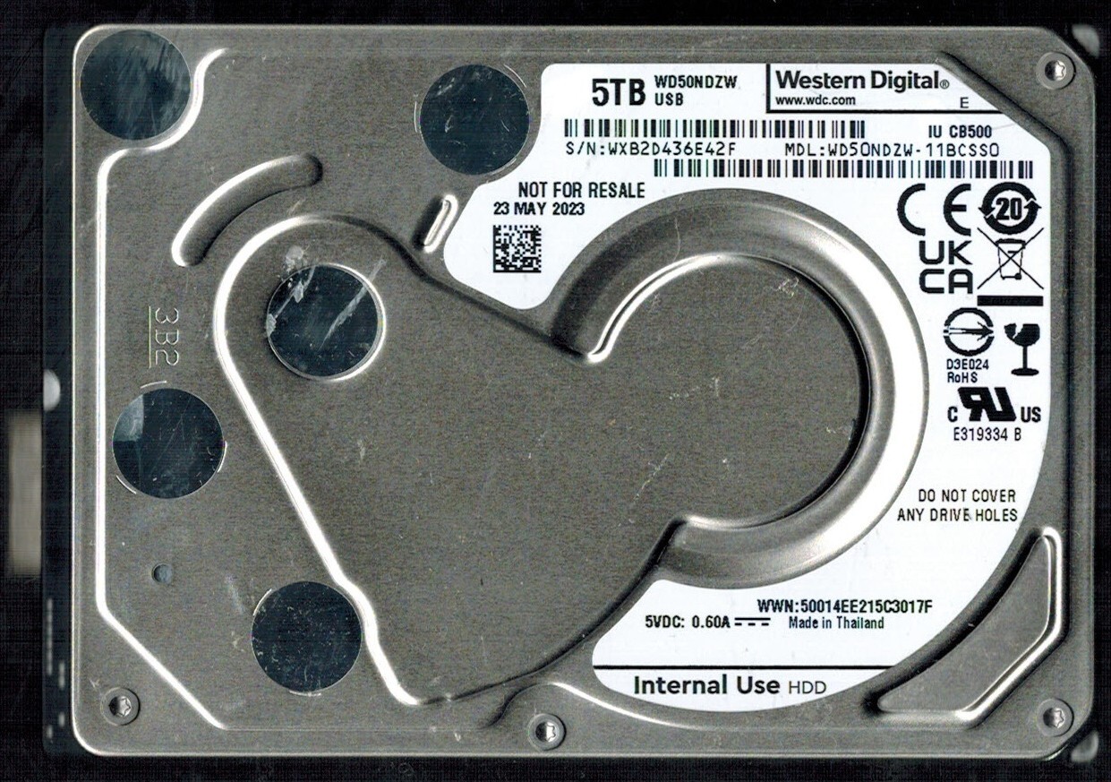WD50NDZW-11BCSS0 S/N: WXB2D WESTERN DIGITAL 5TB THAILAND MAY 2023