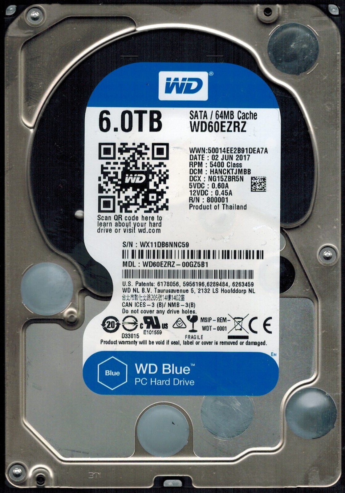 WD60EZRZ-00GZ5B1 S/N: WX11D DCM: HANCKTJMBB WESTERN DIGITAL 6TB THAILAND JUN 20